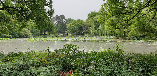 We are in the park proper, and it is magnificent, with flowers, mostly at the start hydrangeas and then any number of other trees and shrubs, some carved into other flower shapes like a lotus.