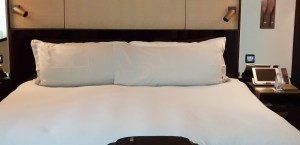 The bed was very large and extremely comfortable, as were the pillows.  Pillows, I’m afraid, are a bugbear with me, as no hotel seems to be able to get it right.  They’re either too soft or too hard, too tall, or too shallow.  Here, they managed to get it right.