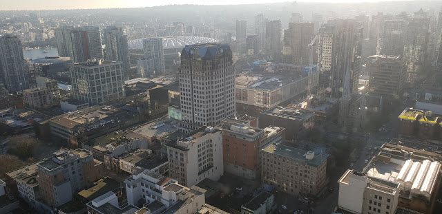 a place where we could get a 360-degree view of the city of Vancouver although it was very difficult to see any of the old buildings because they were hidden by the newer buildings, nor could we see the distant mountains because of the haze.
