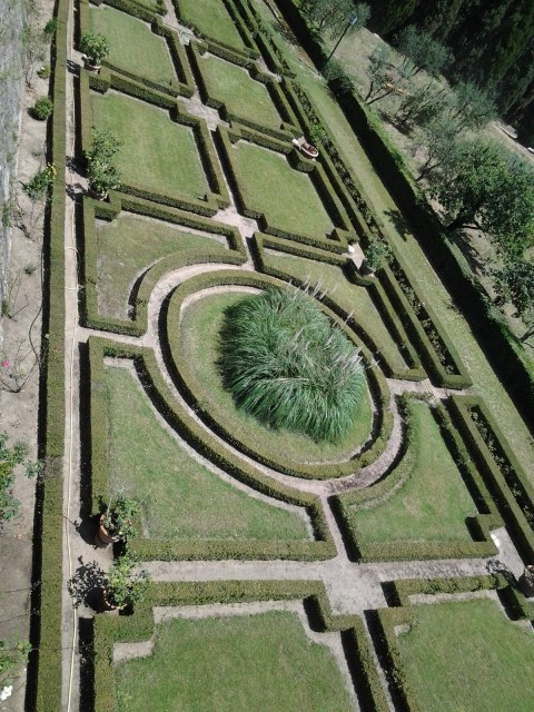 The walkway leads to the guard’s tower, and views over the countryside, and in particular, the styled gardens of English origin