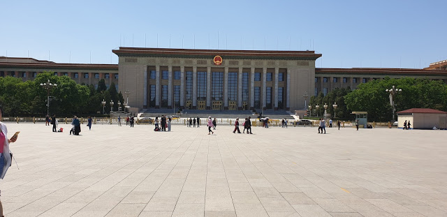 This is huge; one of the largest public squares in the world, and if you’re going to walk it, like we did, make sure you’ve been exercising before you go. It covers 44 hectares, borders on the Forbidden City, and has a memorial to Chairman Mao in the center of it. But you cannot go near it, it’s fenced off, and it is guarded.