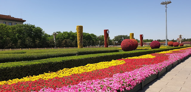 At one end, where the Forbidden City borders on the square, there’s a huge flag pole flying the Chinese flag, and this too like the monument is fenced off, and guarded by members of all of their armed services. No tanks rolled out during our visit much to our disappointment. There is no entrance to the Forbidden City from the square