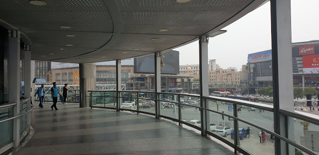 Around the outside of two-thirds of the square, and crossing the roads, was an elevated walkway, which if you go from the first shops and around to the other end, you finish up, on the ground level, at Starbucks.