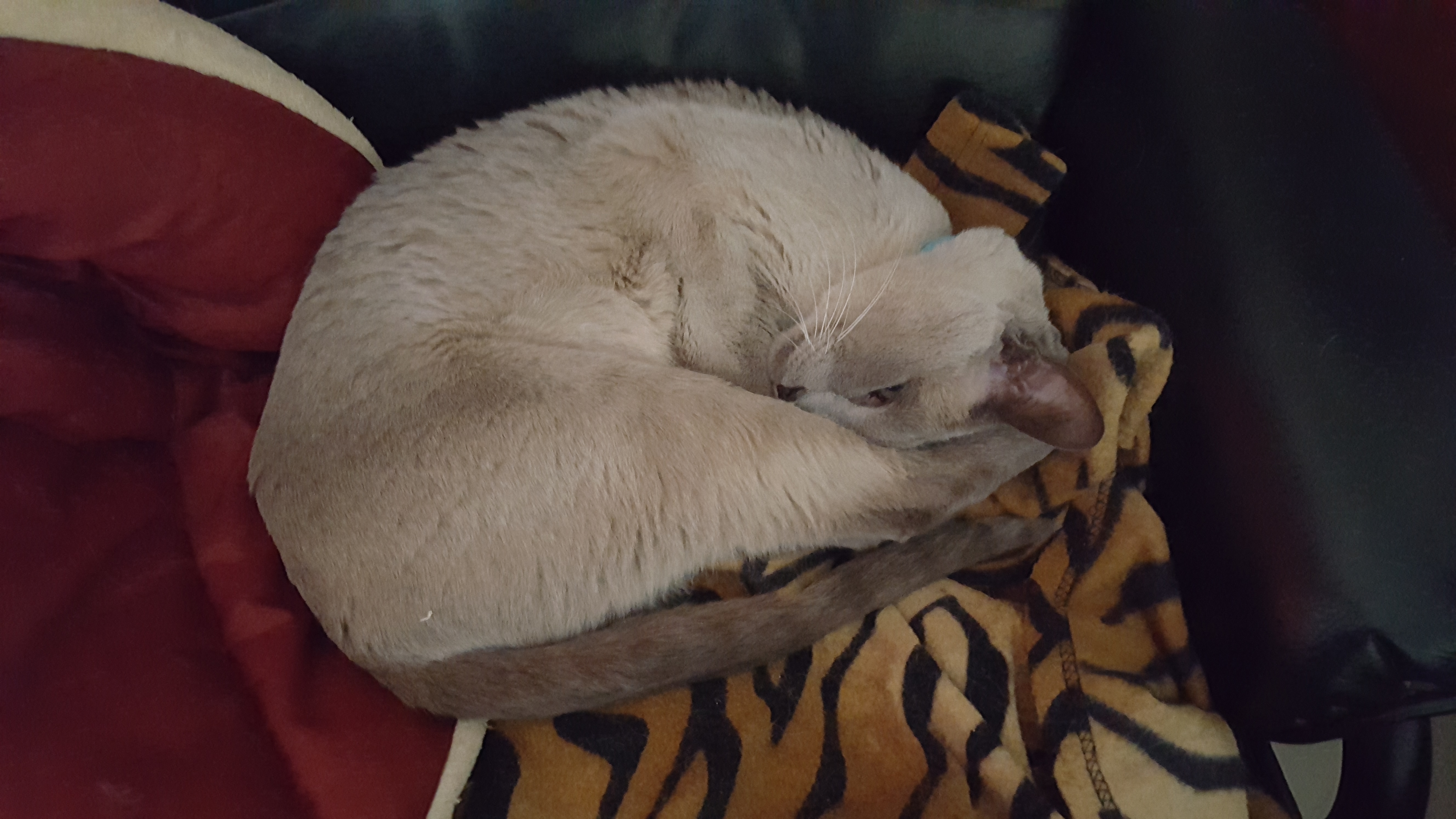 He jumps up and joins me, the sitting on my lap, not exactly the coolest spot to be. He’s getting the effects of the fan, I’m not and I’m guessing that’s the point.